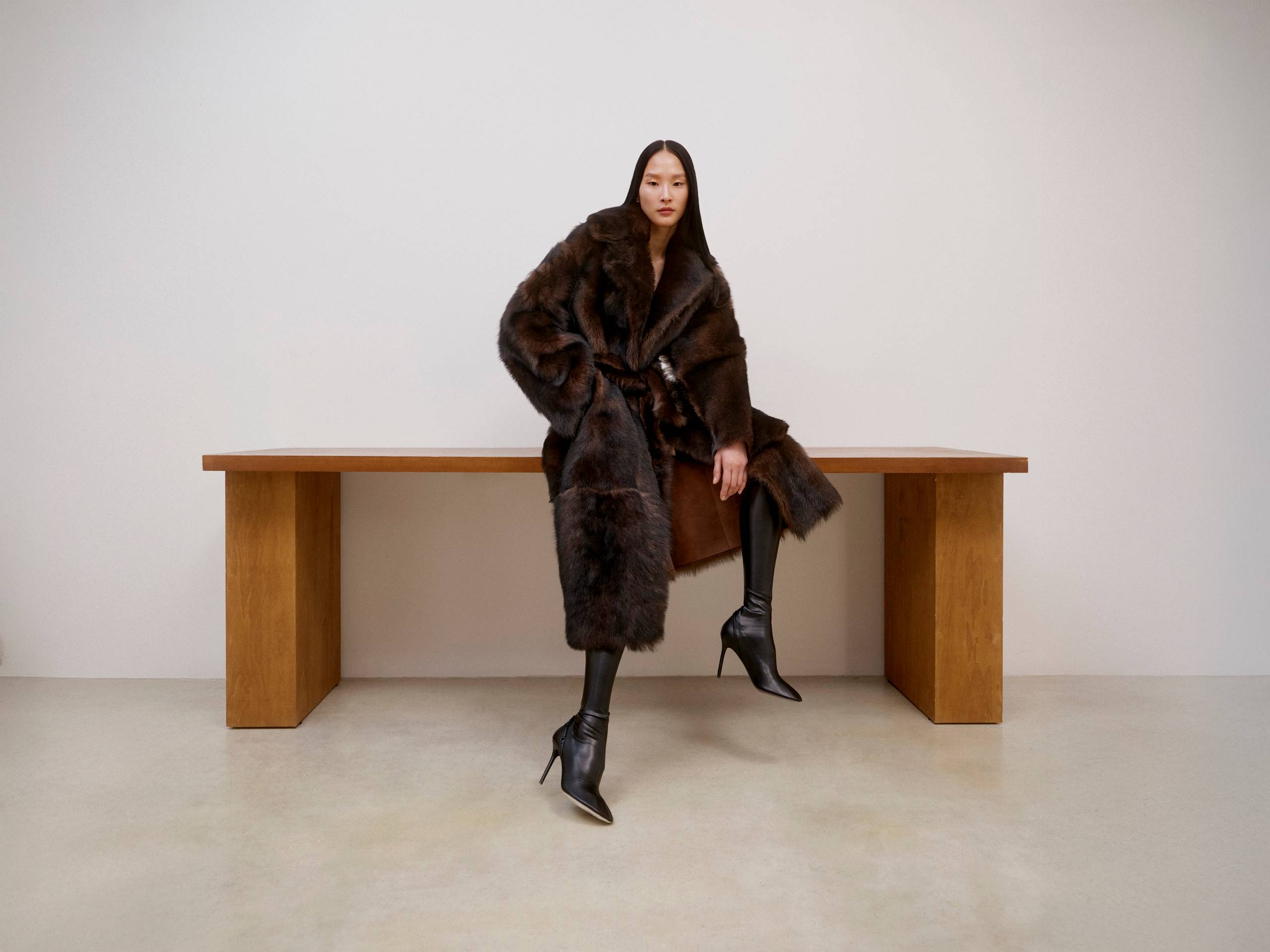 A moment suspended between seasons. Winter has not yet fully softened. Leather remains protective, only lighter now. At the edge of Spring, winter stillness meets awakening.